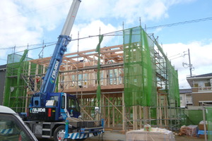 三原市久井町:SW工法で快適な23坪の平屋住宅を建設中!屋根工事完了 -