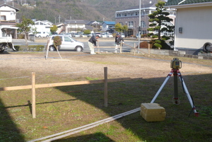 この日は基礎工事の担当者と現場にて配置確認 やり方を行いました![]()