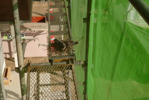 なんと足場の上で鳩が巣を作りすでに卵を温めている様子