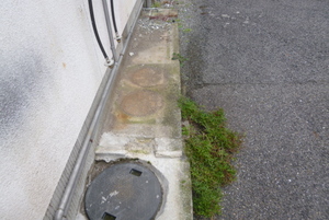 このコンクリート部分を壊して汚水と雨水の配管を行います