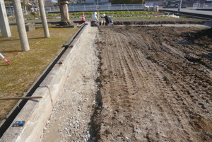 まずは周辺の境界ブロックを積むための捨コンクリート工事![]()