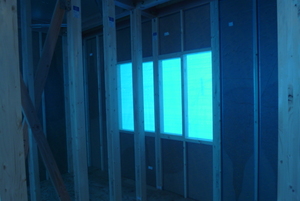 まだまだシートで覆われた現場内部は暗いです サッシを取付けるとようやくシートを剥がす事ができます