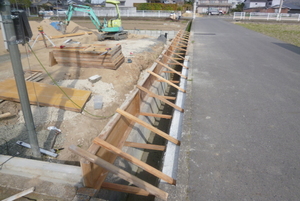 こちらはコンクリートを打設して強固な擁壁を作ります![]()