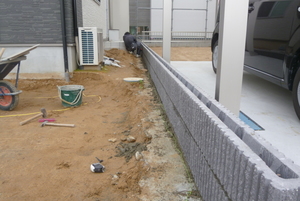 お隣さんとの敷地境界に化粧ブロックを施工しました![]()