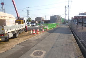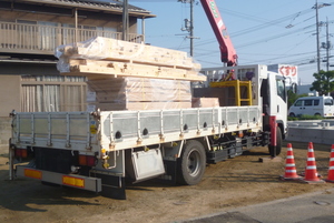 基礎工事も予定通り終わり、本日は上棟に向けての次なる作業の資材を搬入![]()