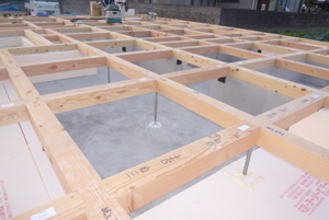 基礎土台取付の後は基礎断熱工事![]()
