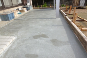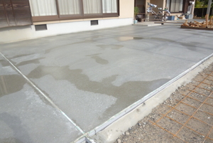 仕上げの駐車場土間コンクリート打設 問題なさそうです 次は残りの部分を打設します