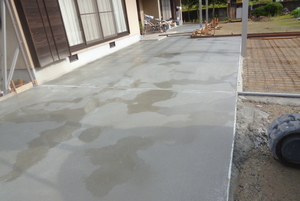 仕上げの駐車場土間コンクリート打設 問題なさそうです 次は残りの部分を打設します