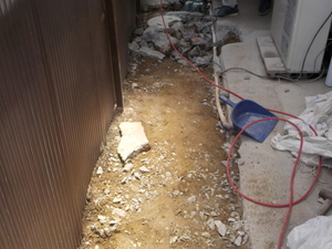 昼でもうす暗い通路の中で、まずは既存コンクリートのハツリ作業![]()