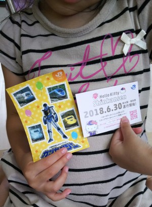 ホームを歩いていると、駅員さんがキティのカードとカンセンジャーのシールをくださいましたぁ