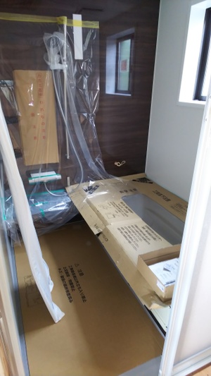 お風呂も設置が終わり、傷がつかないよーにしっかり養生してあります