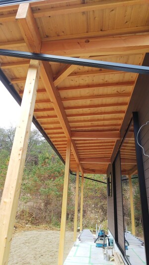 三原市久井町:SW工法で快適な23坪の平屋住宅を建設中!屋根工事完了 -