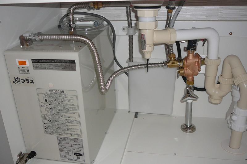 • 洗面化粧台内部に小型の電気温水器を取り付け、お湯の配管の難しい場所にも設置可能となりました。