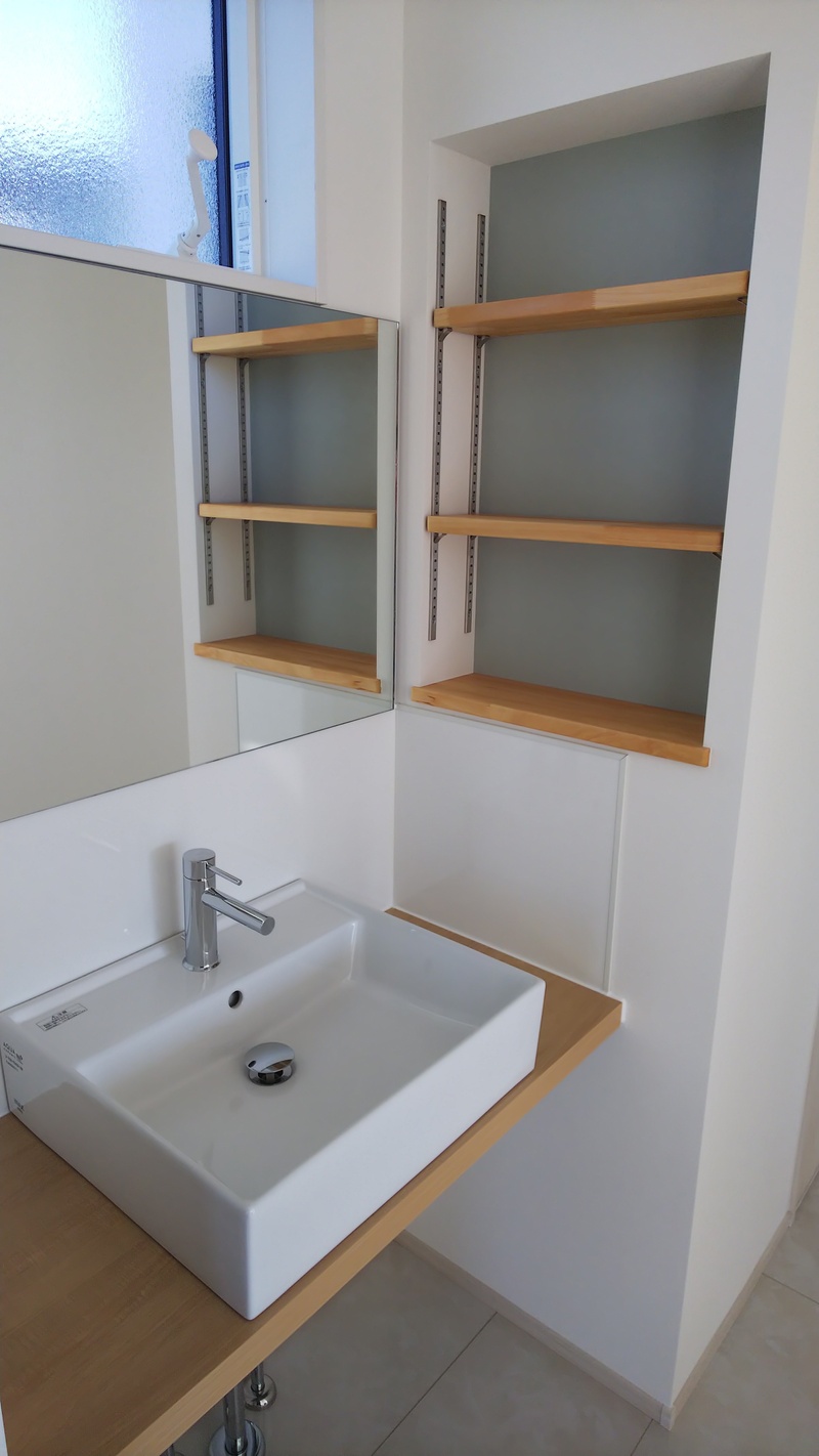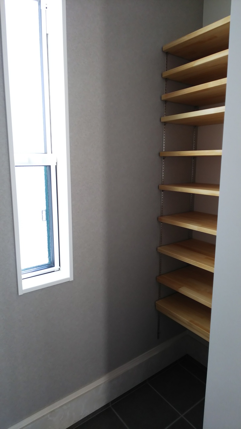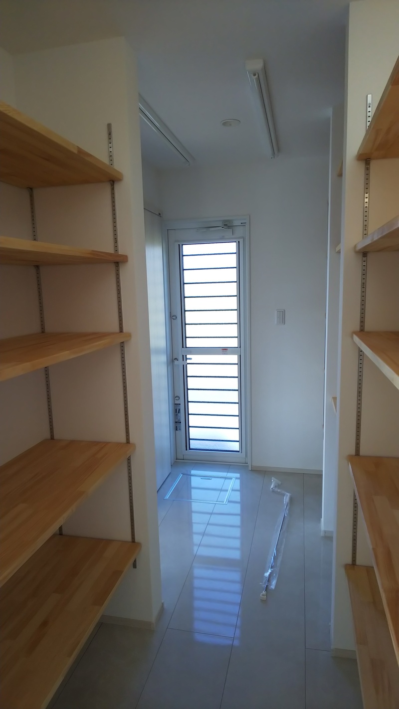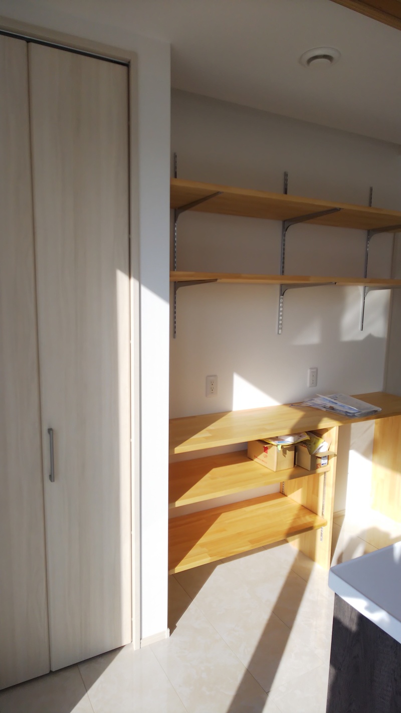 • キッチンの背面には収納と可動棚でオリジナルな使い勝手に